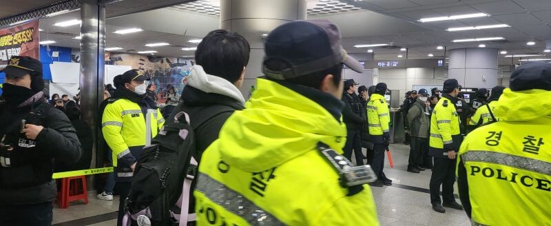이슈앤 - 국회의사당역에 모인 집회 시위대와 대치 중인 경찰