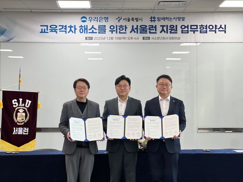지난 18일 서울시청 서소문2청사에서 열린 협약식에는 우리은행 조세형 기관그룹장을 비롯해 서울시 정진우 평생교육국장, 사단법인 함께하는 사랑밭 정유진 대표이사 등 주요 관계자가 참석했다.