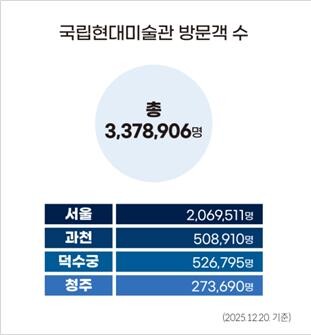 이슈앤/ 국립현대미술관(MMCA, 관장 김성희)은 올해 미술관을 찾은 방문객 수가 337만 명을 돌파하면서(12월20일 기준) 개관 이래 역대 최고 기록을 달성했다.