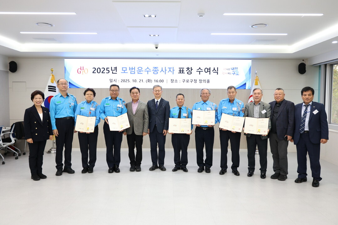 이슈앤/ 서울시 구로구(구청장 장인홍)는 21일 구청 창의홀에서 2025년 모범운수종사자 표창을 수여했다.