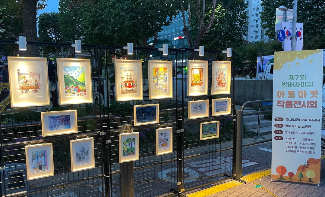 한편 마실콘서트의 부대행사인 아트마켓에서는 방배사이길 미술학원과 방배본동 자치회관 수강생들의 작품을 전시하는 사이길 반짝 전시회가 열려 골목 속 작은 미술관을 거니는 듯한 즐거움을 선사한다.