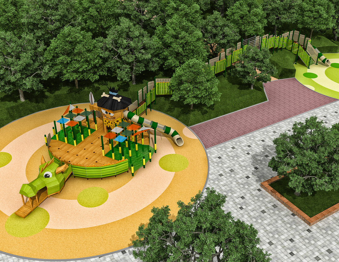 특히 원시인 소년 뭉치를 등에 태우고 공룡 뭉치노가 함께 떠나는 여행이라는 주제로 자연 지형을 살린 모험형 놀이터로 꾸몄다.