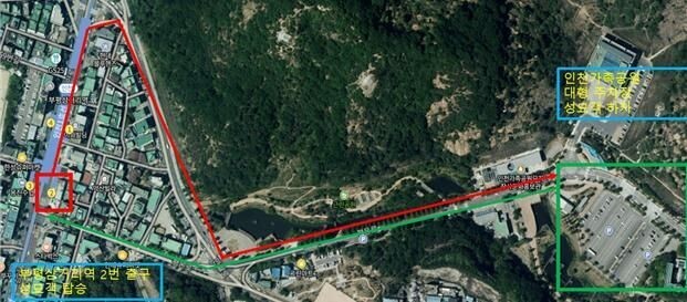 - 외부순환 노선: 인천지하철 부평삼거리역 2번 출구 → 인천가족공원 대형