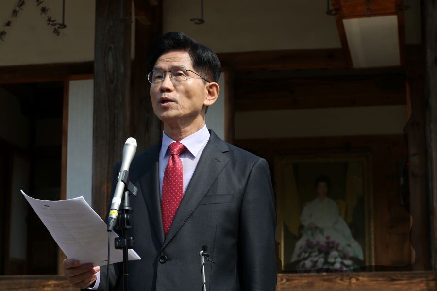 이슈앤/ 김문수 국민의힘 대통령 후보는 25일 충북 옥천을 찾아 육영수 여사 생가 참배를 마치고 기자회견을 통해 “대통령이 되면 당 운영은 당에 맡기고 개입하지 않겠다”고 밝혔다.