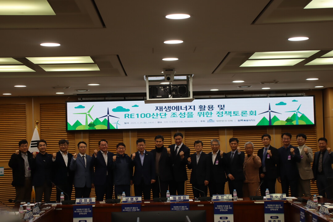 24일 국회에서 더불어민주당 이원택 국회의원실은(김제·부안)은 전북특별자치도와 공동으로 “재생에너지 활용 및 RE100산단 조성을 위한 정책토론회”를 주최하였다.