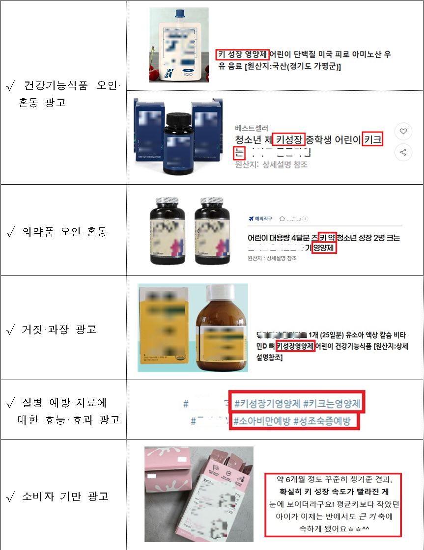 키 성장과 관련된 식품 또는 건강기능식품을 광고·판매하는 온라인 게시물을 점검한 결과 부당광고 153건을 적발했다.
