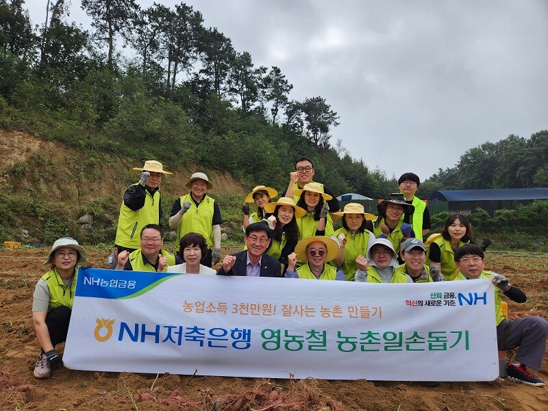이번 활동은 본격적인 수확기를 맞아 일손 부족으로 어려움을 겪는 농가를 지원하기 위해 마련된 것으로 김장섭 대표이사와 NH저축은행 임직원들은 고구마 수확 및 폐비닐 수거 등 다양한 활동에 참여하며 일손을 보탰다.