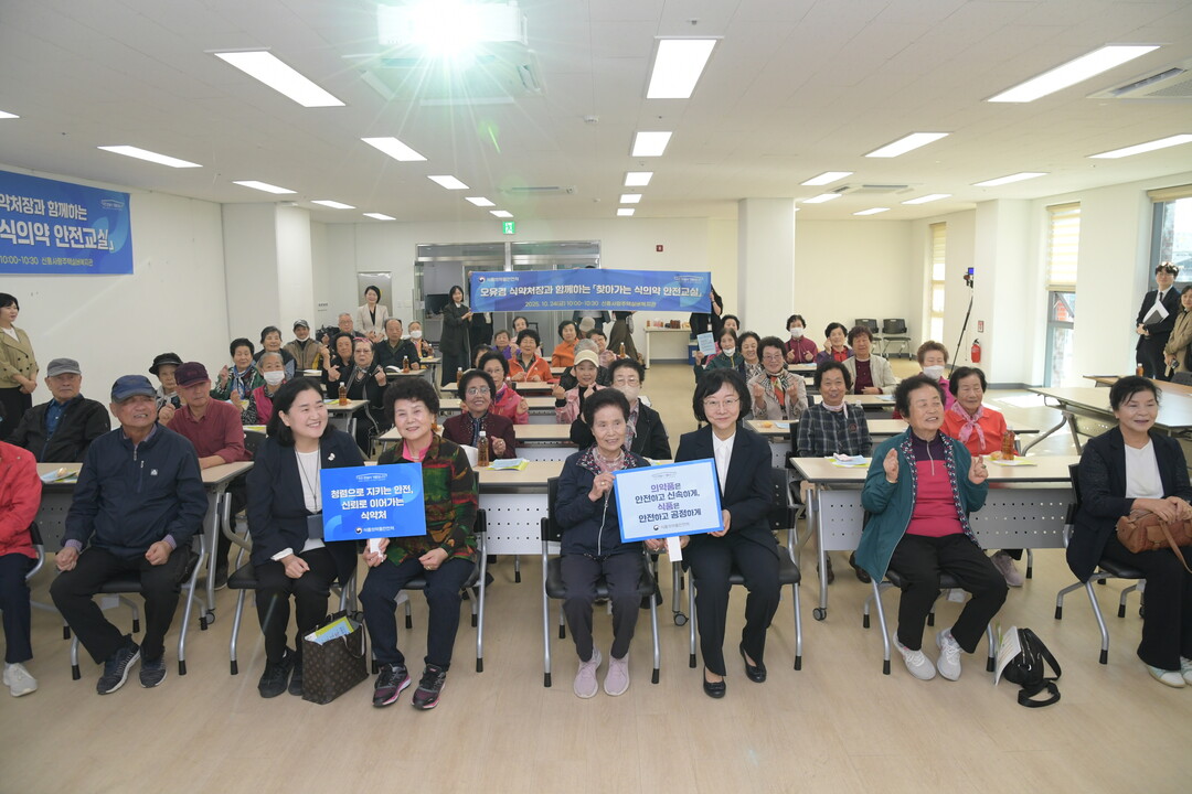 이슈앤/ 식품의약품안전처 오유경 처장은 24일 신흥사랑주택실버복지관을 방문해 2025년도 67차 찾아가는 식의약 안전교실 일일강사로 식의약 안전교육을 진행했다.