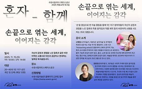 워크숍은 11월 15일 오전 10시와 오후 2시 총 2회 수원시립아트스페이스광교에서 무료로 개최된다.