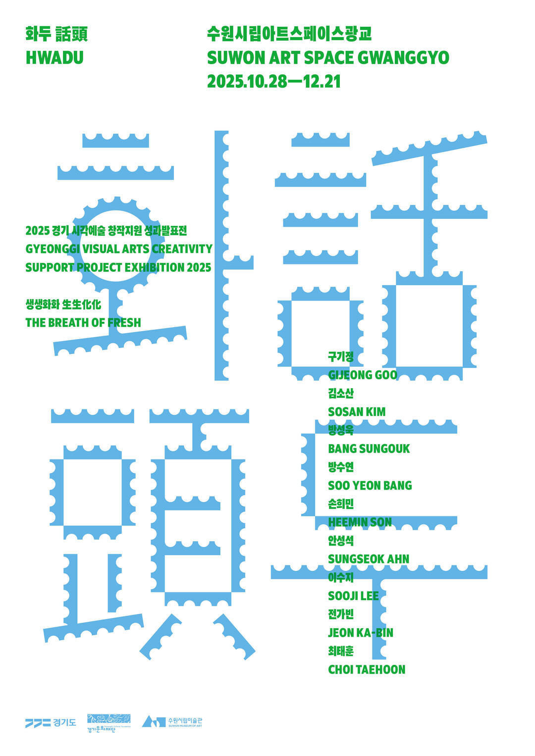 경기문화재단과 수원시립아트스페이스광교는 창작활동을 지원하고 창작 생태계를 확장하는 문화예술기관의 책임과 역할을 실천하기 위해 2025년 경기 시각예술 창작지원 성과 발표전 <생생화화 生生化化:화두 話頭>를 협력하여 선보인다.