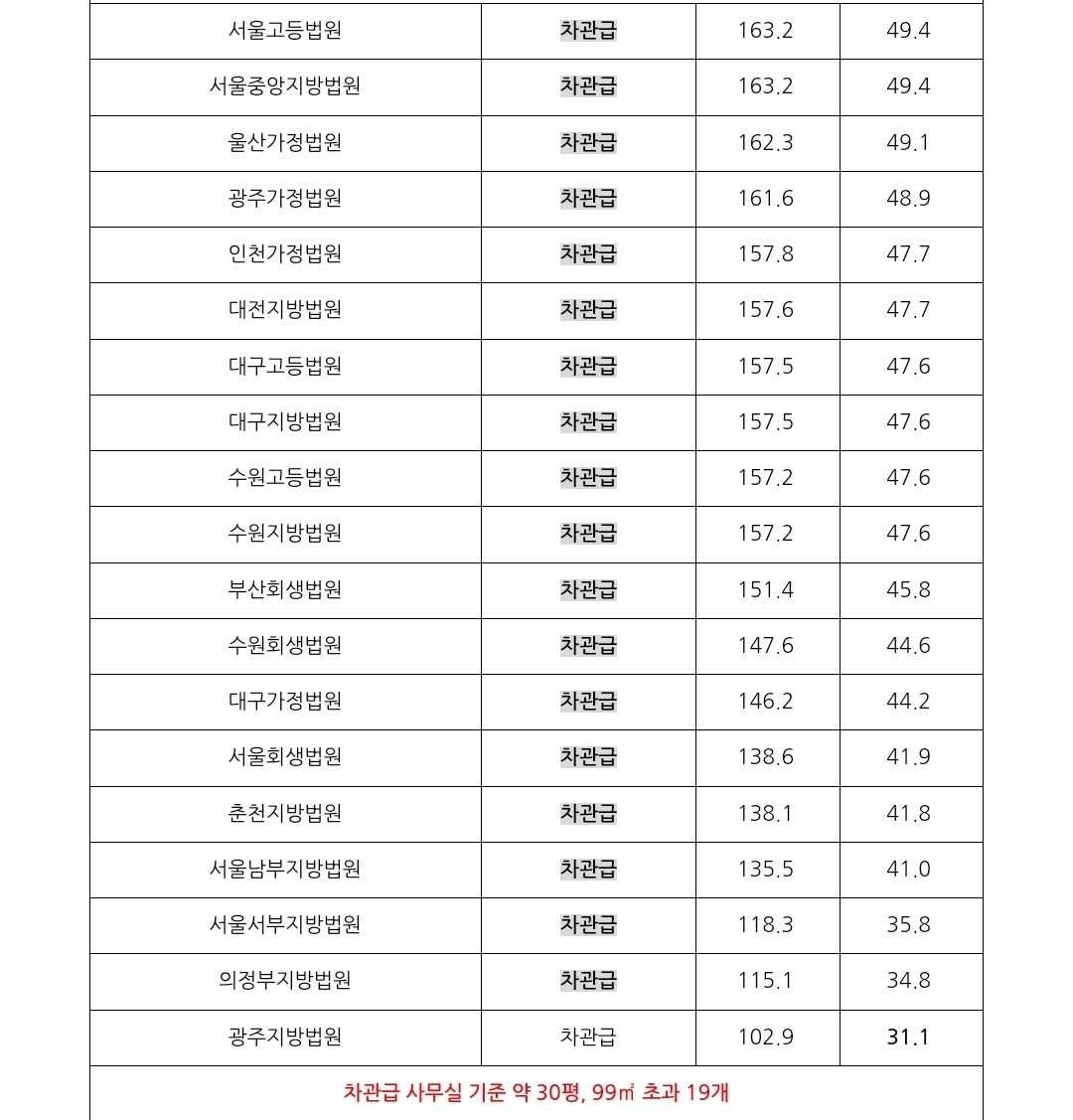 문제는 앞서 대법원이 제출한 추계 내역에는 대법관 사무실 공간 기준으로 ‘정부청사관리규정’ 을 준용했다고 밝혔지만, 정부청사관리규정상 장관급 기관장 단독사무실의 면적 기준은 집무실과 접견실, 비서실을 모두 포함하여 165제곱미터(약 50평)로 제한하고 있다는 점이다.